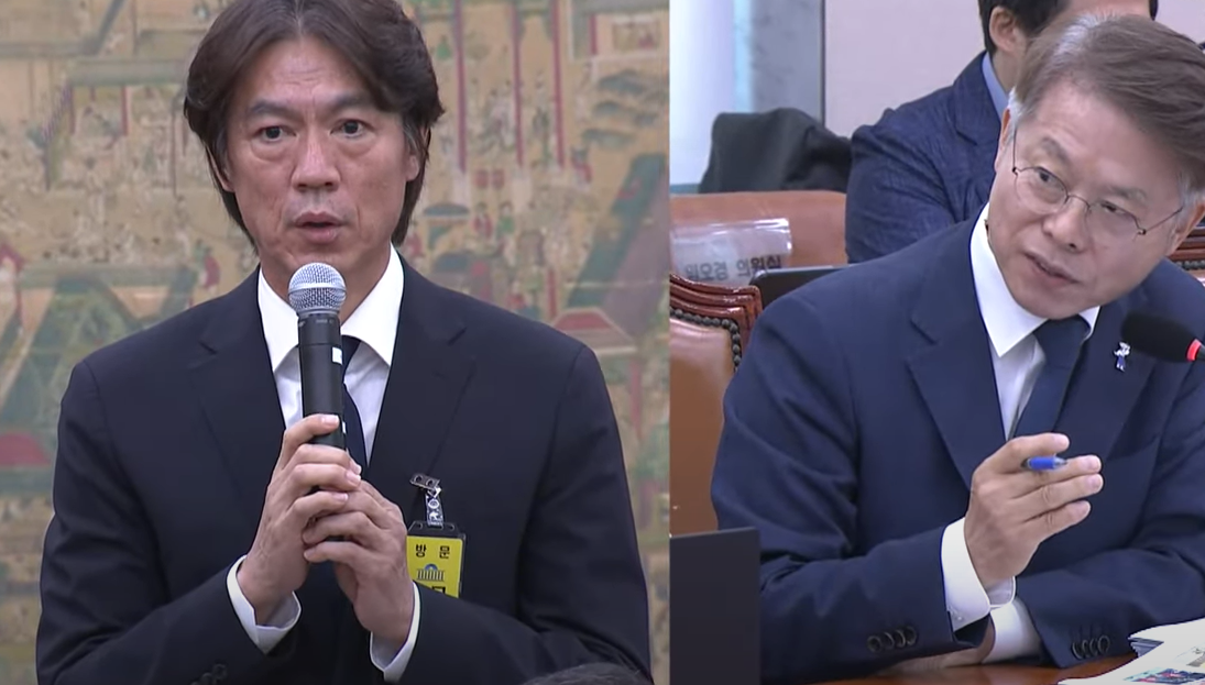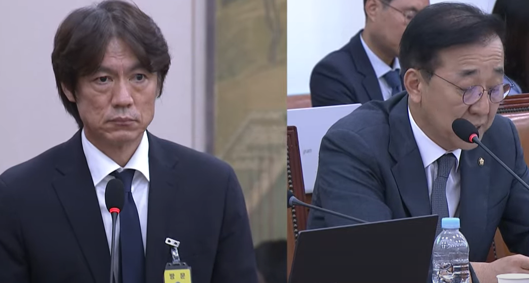오늘 국회 문화체육관광위원회에서 열린 청문회에서는 대한축구협회의 정몽규 회장과 홍명보 감독이 증인으로 출석하여 감독 선임 과정에서 발생한 논란에 대해 질문을 받았습니다.