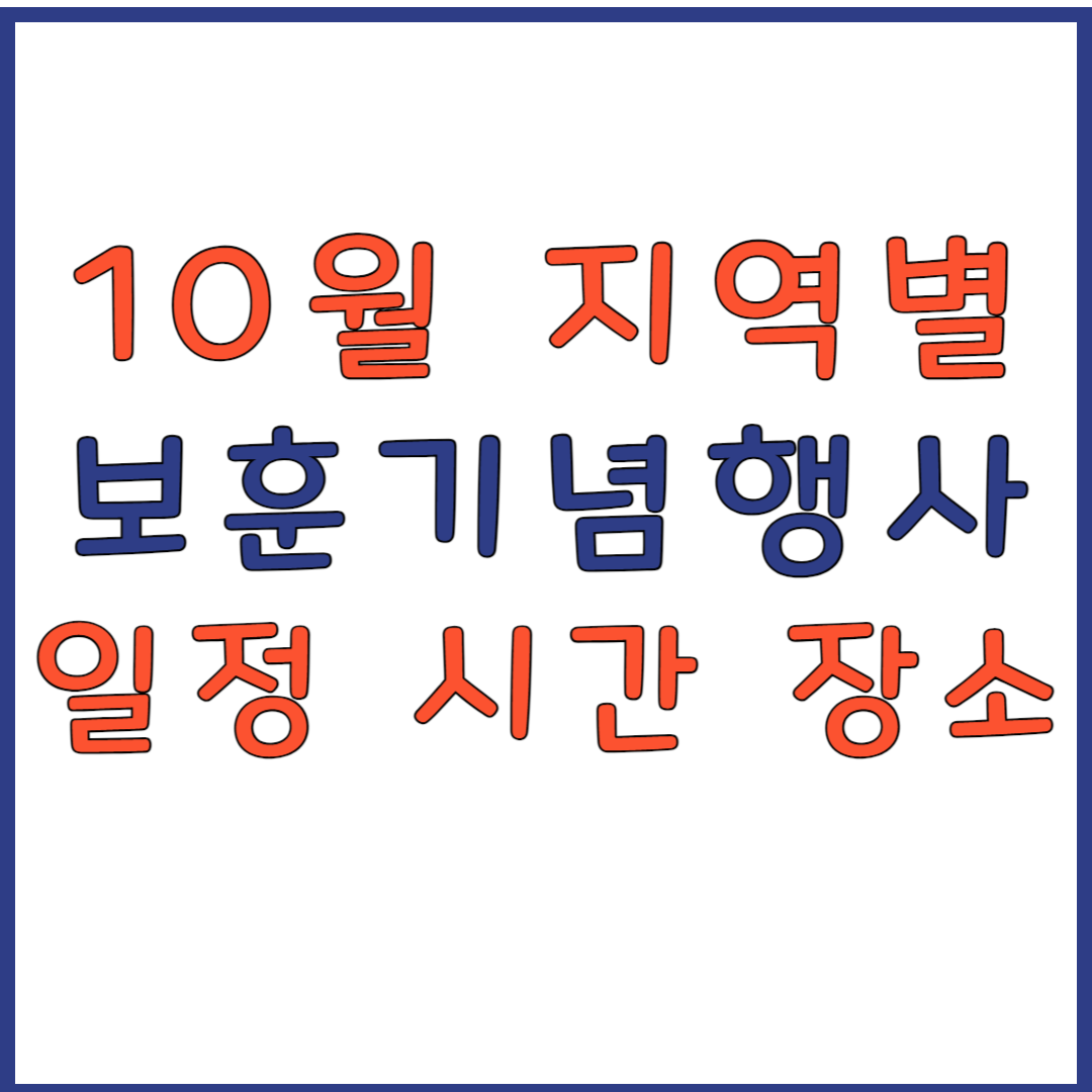 2024년 10월은 우리나라의 보훈 문화가 더욱 빛나는 달입니다. 매년 이 시기가 되면, 광복회와 재향군인회 등 여러 민간단체가 주관하는 다양한 보훈 기념행사가 전국 곳곳에서 개최됩니다. 이러한 행사들은 단순히 과거의 역사를 기리는 것을 넘어, 현재와 미래를 아우르는 의미 있는 시간으로 자리 잡고 있습니다. 특히, 이번 포스팅에서는 10월 지역별 보훈기념행사 일정 시간 장소 정리해 보겠습니다.