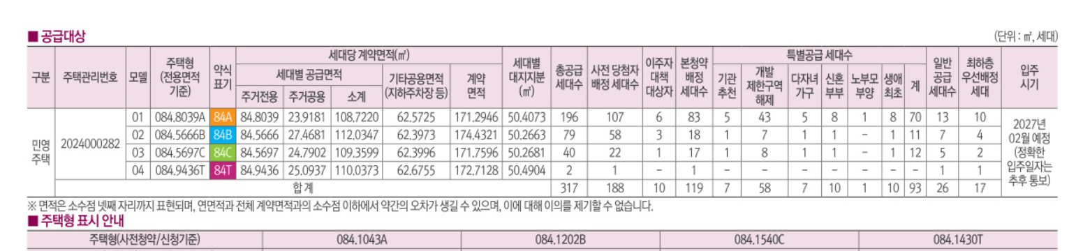 ✅ 타입 : 84A, 84B, 84C, 84T 제곱미터
