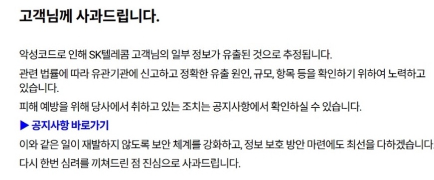 SK텔레콤 해킹 사고로 인해 전 고객 유심 무상 교체가 발표되면서